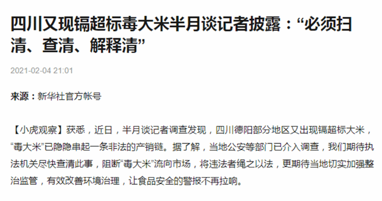以四川德阳等地的土壤镉污染导致的大米镉超标事件,引起学生关注与讨论,由农民在此事件中的困境激发学生的三农情怀,传递绿水青山就是金山银山的重要性。